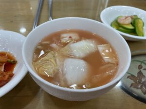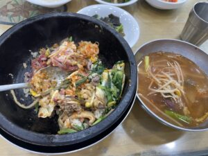 비빔밥과 함께 제공되는 선지 소고기국은 또 하나의 빼놓을 수 없는 별미입니다. 이것만 따로 팔아도 되겠다 싶을 정도로 강추 입니다. 여기서 꿀팁은 빨리 먹고 한그릇 더 달라고 리필 하세요! 이 방법은 안비밀입니다. 저는 항상 그렇게 합니다. 눈치보지 않아요!